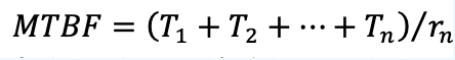 MTBF(Mean time between failures 平均故障间隔时间)其度量方法为:在规定的条件下和规定的期间内,产品寿命单位总数与故障总次数之比。一般用来表征可修复产品。计算公式: